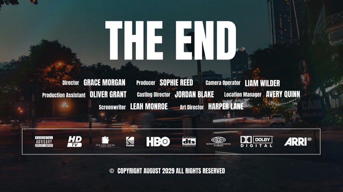This template is perfect for filmmakers seeking a sleek and professional touch to their endings. Featuring smooth animations and clean typography, this template organizes credits seamlessly while allowing customization with awards and logos. Ideal for enhancing films, documentaries, or digital content with a polished, cinematic finish, it offers flexibility and easy adaptation for any project.